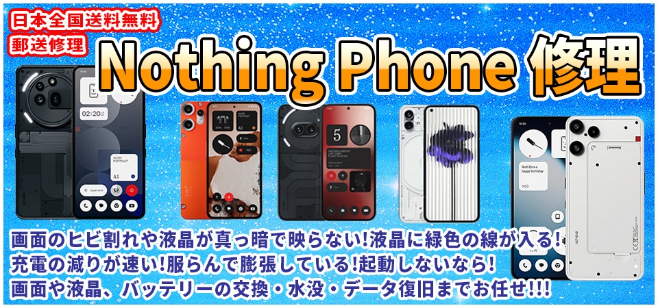 NothingPhone郵送修理可能!遠方にお住まいの方はぜひご利用下さい!修理は全国どこからでも受付可能です!